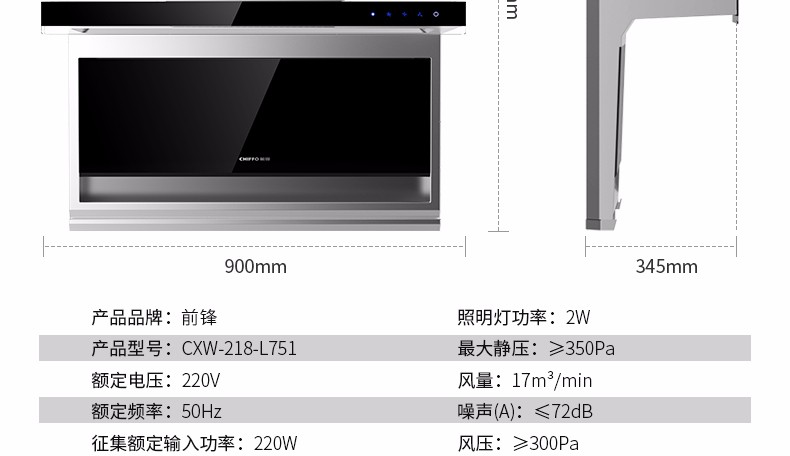 前鋒平板雙吸油煙機(jī)L751