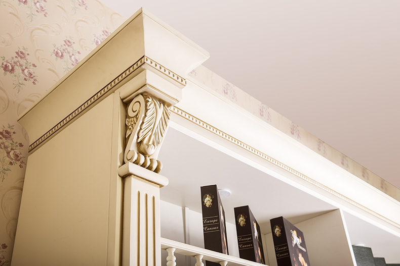 鑲金的玻璃,精美的角柱,法式鄉(xiāng)村特有的詩意風(fēng)情流露期間;