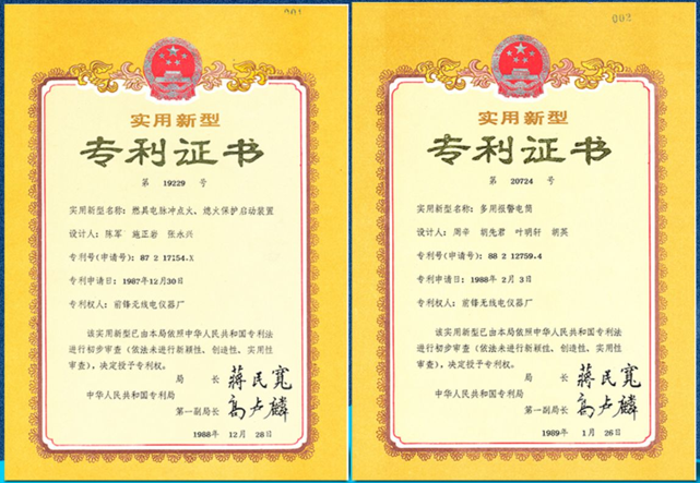 1986年,前鋒QFM14型熱水器誕生的,這是中國首臺雙保護(電脈沖點火技術(shù)和熄火保護裝置)燃氣熱水器,并正式將電脈沖點火技術(shù)和熄火保護裝置申請為前鋒專利,此雙重保護裝置專利技術(shù)填補了國內(nèi)熱水器安全的行業(yè)空白。